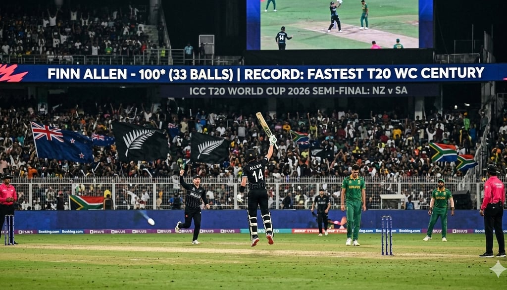 In a match that will be remembered as the "Kolkata Carnage," New Zealand's Finn Allen produced the greatest individual batting performance in T20 World Cup history to dismantle a previously unbeaten South African side. Chasing a competitive 170 for a spot in the final, Allen didn't just play an innings—he conducted a demolition.