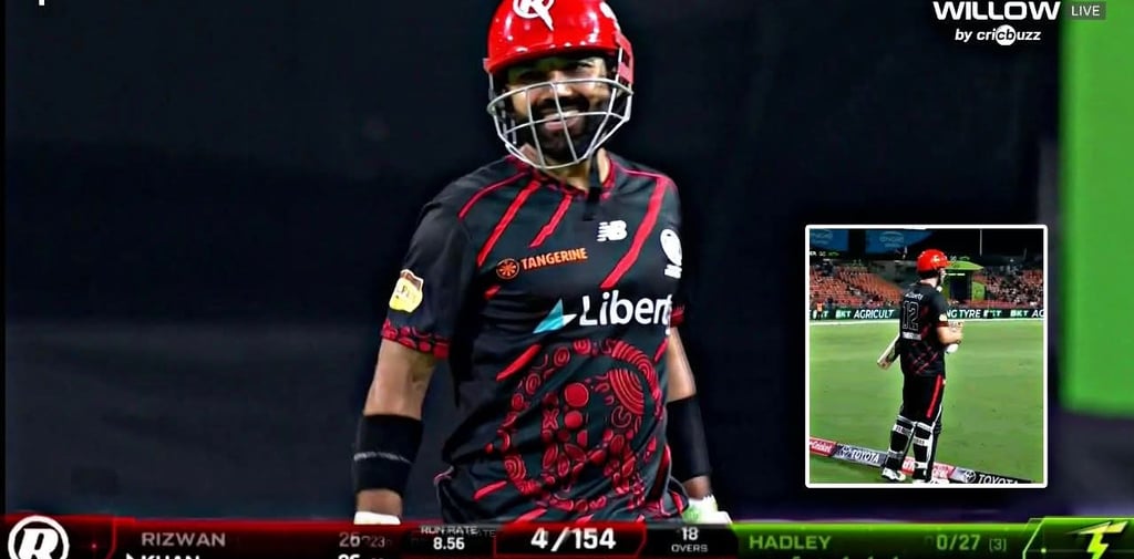 Rizwan scored 26 runs off 23 balls, hitting two fours and one six, operating at a strike rate of 113.04. While his innings provided stability, the scoring rate slowed slightly as the Renegades approached the death overs.