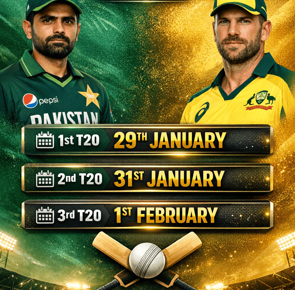 Cricket fans in Pakistan are set for a blockbuster contest as Pakistan and Australia lock horns in a three-match T20 series at the iconic Gaddafi Stadium, Lahore. The series, scheduled from 29 January to 1 February, promises explosive cricket, packed crowds, and intense rivalry as two of the strongest T20 sides clash under lights.