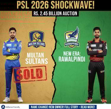 Explore the historic Rs. 2.45 Billion auction that transformed the PSL landscape as Multan Sultans officially rebrands to Rawalpindi for the 2026 season. Get the inside scoop on the record-breaking deal by Walee Technologies, the reasons behind the shocking name change, and what this means for the future of the league. Stay ahead of the game with our deep dive into the new rivalries, squad updates, and the "Pindi Boys" era!